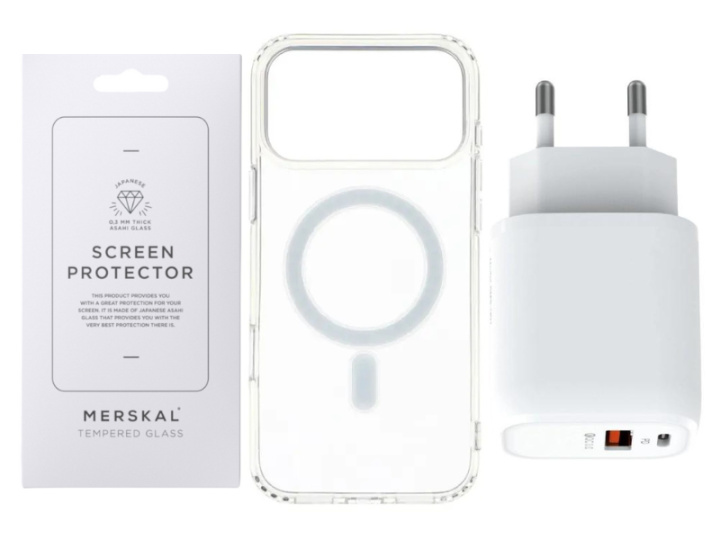 Vårt tillbehörspaket ger dig allt du behöver till din iPhone 17 Pro till ett ännu lägre pris. Njut av telefonens alla funktioner och design samtidigt som du ger den ett bra skydd. I Merskal Clear kit ingår nedanstående produkter